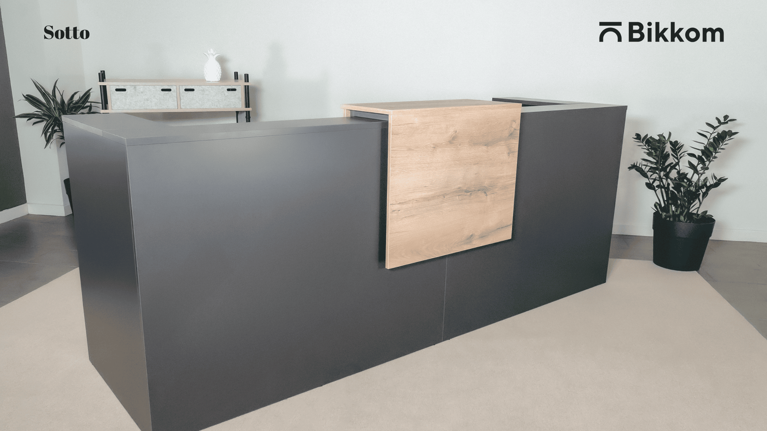 Se stai cercando una reception elegante, di desgin, con un'ottimo rapporto qualità-prezzo, con tantissime conbinazioni di finiture e facile da montare, questo è il tuo prodotto! Per arredare delle recpetion di gradni dimensioni, non esitare a prendere la reception Sotto, ideale per due dipendenti.