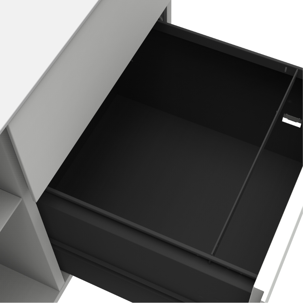 - Spazio di archiviazione ampio: A un lato trovi due cassetti, mentre all'altro lato c'è un ripiano, perfetto per documenti e altri oggetti da ufficio.