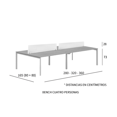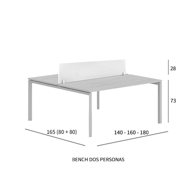 - Pannello divisorio frontale di 28 cm di altezza, realizzato in melaminico color grafite di 25 mm di spessore e fissato al tavolo tramite morsetti